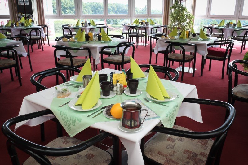 كما يوجد مطعم يقدم وجبات الطعام لنزلاء المنتجع يختار نزلاء المنتجع وجباتهم داخل المطعم بنظام البوفيه المفتوح مع مراعاة النظام الغذائي المتبع لمرضي السكري والمرارة وغيرها، ويمكن توفير نظام حمية للنزلاء الراغبين بذلك. وبالطبع كل الحوم حلال مذبوحة طبقاً للشريعة الإسلامية. كما توجد قهوة عربية تقدم مجموعة واسعة من أنواع الشاي والقهوة. ويوجد أيضا مصلى للمسلمين.